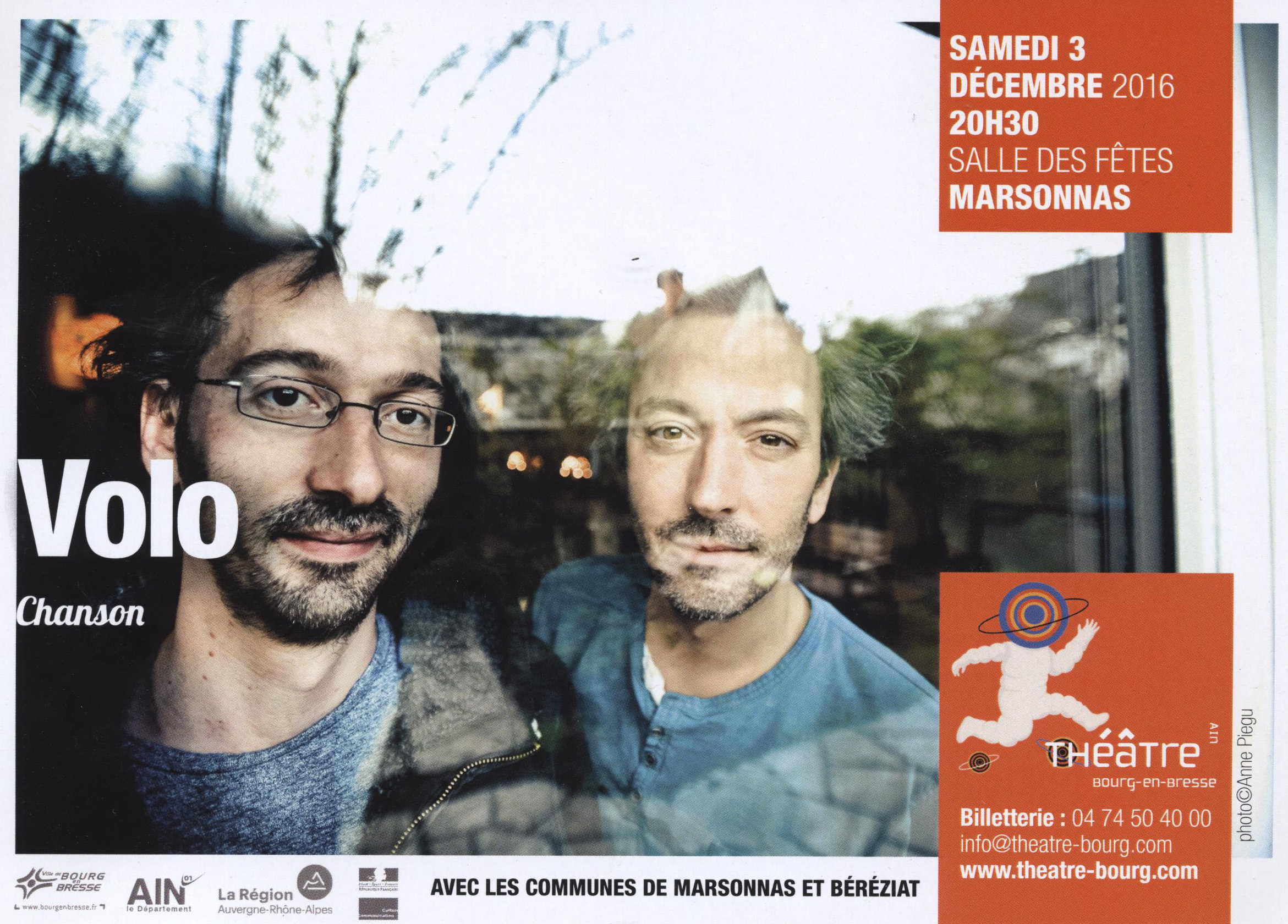 Les communes de Marsonnas et de Béréziat vous proposent une soirée avec les VOLO samedi 3 décembre à 20h30 à la salle des fêtes de Marsonnas.